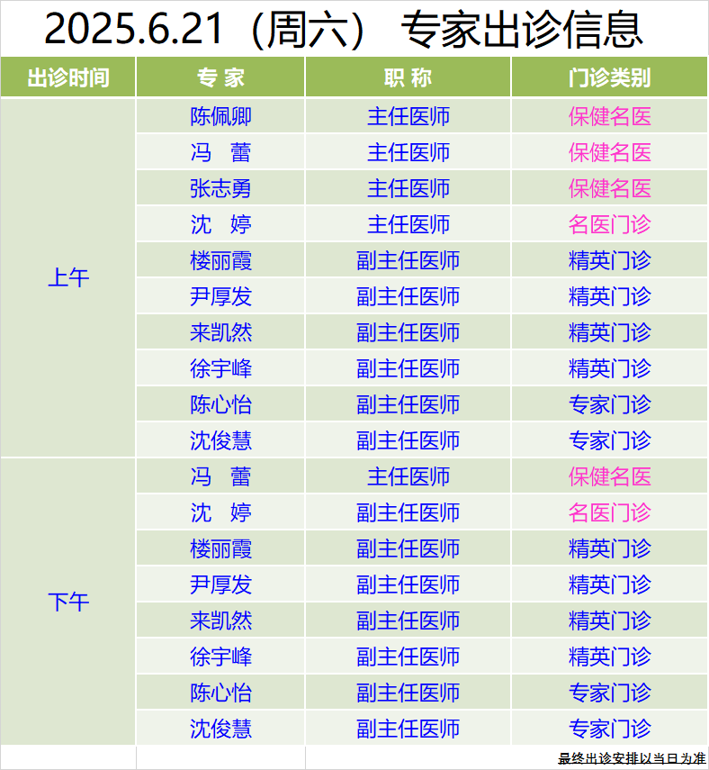 4. 周一至周五专家出诊信息,敬请关注新浪微博@浙二眼科中心、微信公众号【浙二眼科中心】。