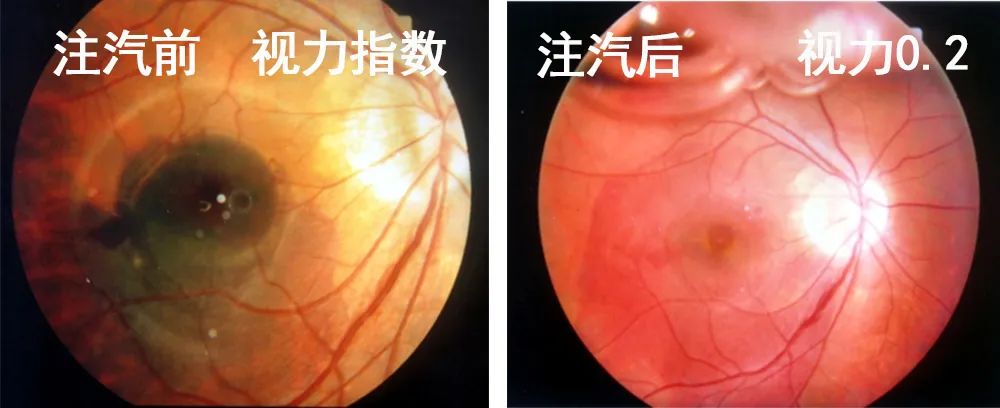 采用超精微针进行视网膜下注射血栓溶解药物rtPA(阿替普酶),快速溶解黄斑部视网膜下出血,取得了喜人的疗效,短期内即为患者挽回了宝贵的视力。