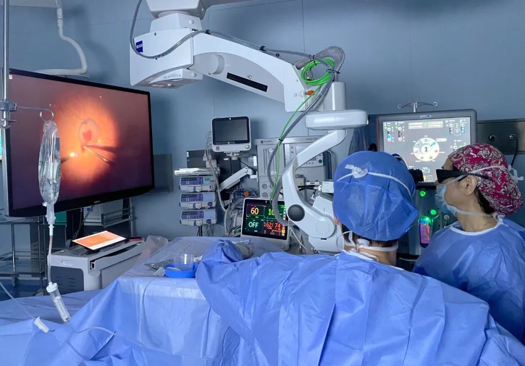 方肖云主任(右)为患者实施视网膜下注射rtPA手术