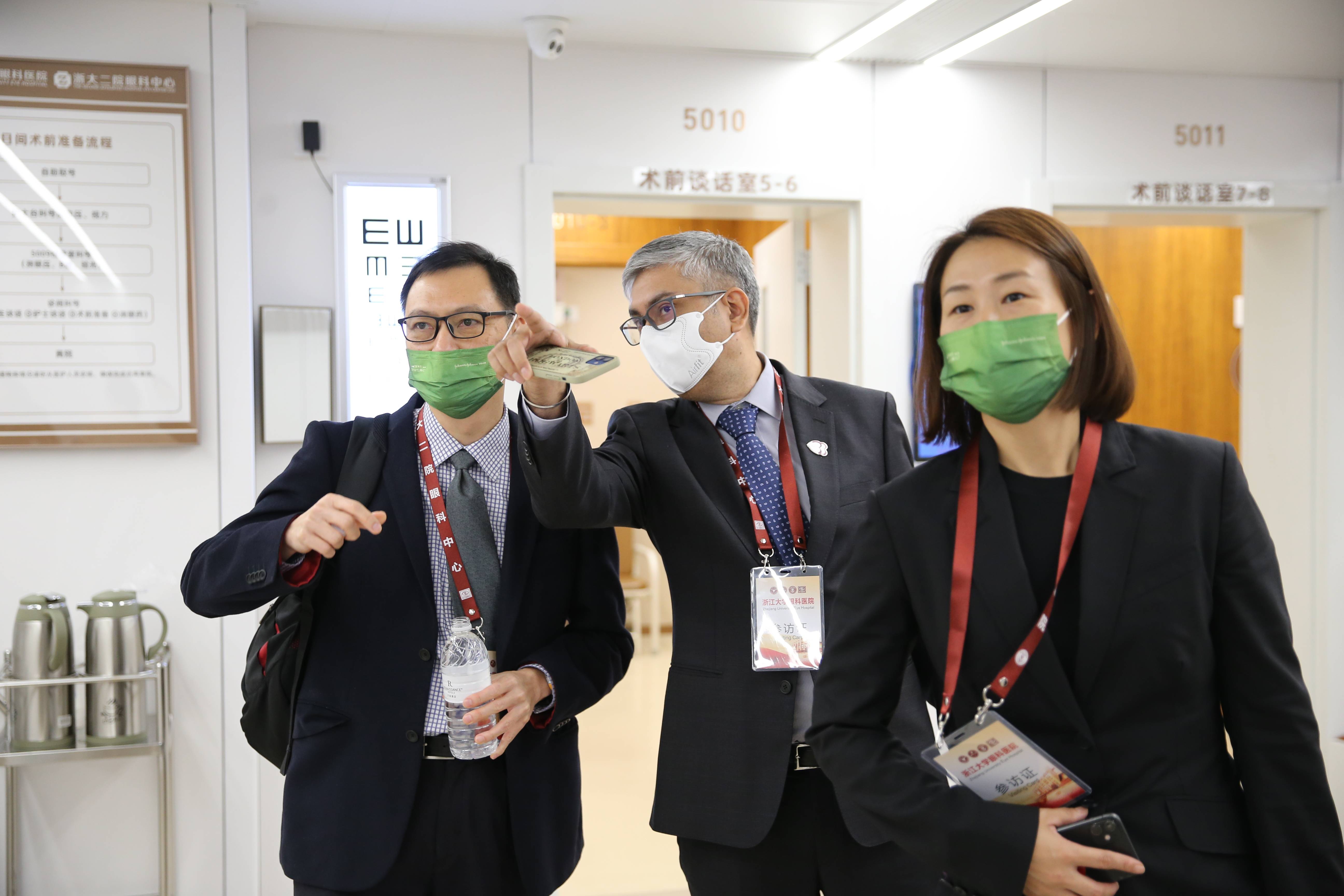 在医院工作人员陪同下,强生眼力健亚太区财务总监Bok Aun Ong先生、亚太市场部总监Mandeep Grover先生、商务运营及战略总监ENZU JEON女士还参观了医院门诊区、病房、省眼科重点实验室,医院航母式的发展规模、精准高效的管理模式、整洁舒适的诊疗环境和先进的科研条件成果等令来访客人赞不绝口。