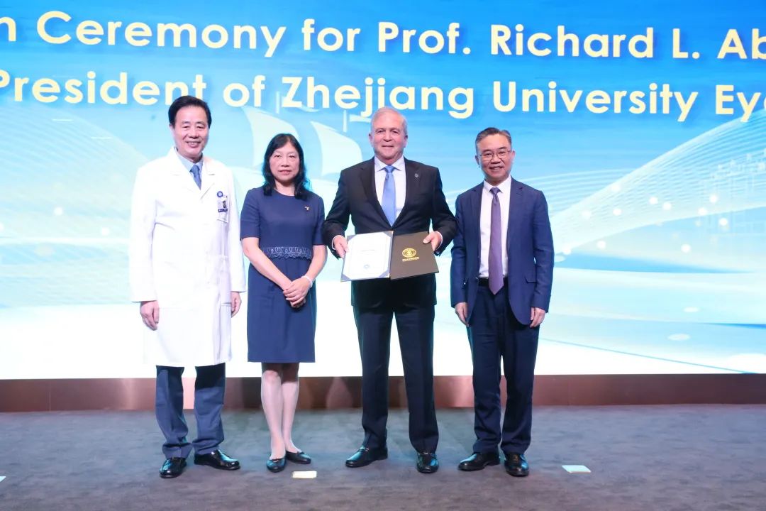 Richard L. Abbott 教授在国际上享有崇高声誉和威望,多年来为推进中国眼科发展作出了积极贡献,也为浙江大学眼科医院、浙大二院眼科中心国际化发展给予了许多支持和帮助。在接过聘书后,Abbott 教授激动地表示,加入一流的浙江大学眼科医院是他的莫大荣幸。他感叹道,中国眼科在过去的几十年发生了巨大变化,浙江大学眼科医院则是中国眼科高速发展的缩影。他高度赞赏了在姚克教授富有远见和智慧的领导下,中国眼科和浙江大学眼科医院均取得了令人瞩目的成就,尤其是国际影响力正不断提升。他还回顾了自己与中国眼科以及与姚克教授的深厚友谊,他希望能为浙江大学眼科医院医教研全面发展作出更大贡献,助力医院早日建成世界一流眼科。